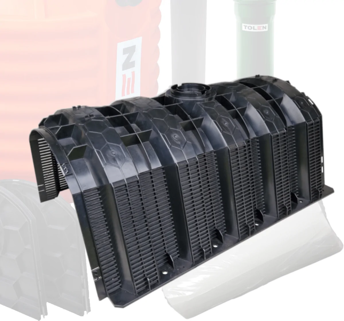 DANE TECHNICZNE POJEDYŃCZEGO TUNELU: ✅ Długość: 1200 mm ✅ Szerokość: 800 mm ✅ Wysokość: 520 mm ✅ Pojemność: 300L ✅ Waga: 11 kg ✅ Powierzchnia rozsączania dolna: 1 m2 ✅ Powierzchnia rozsączania boczna: 0,9 m2 ✅ Powierzchnia rozsączania całkowita: 1,9 m2 ✅ Wysokość perforacji bocznej: 370 mm |